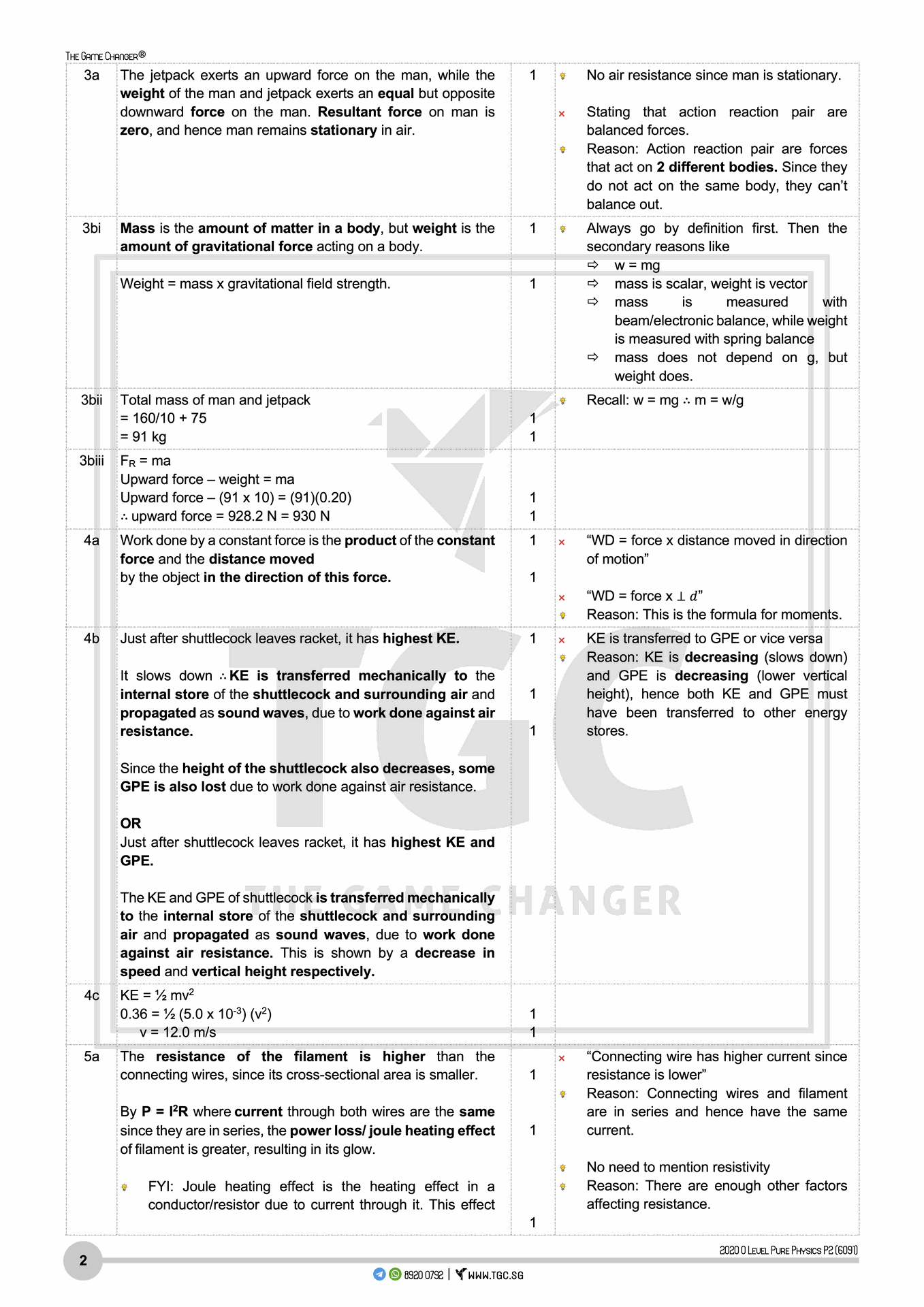 2020 Pure Physics TYS Answers